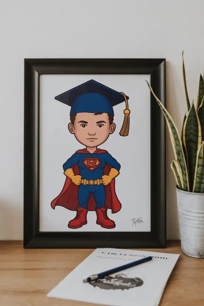 Turn the graduate into a superhero or comic book star! A digital artist can create a fun, illustrated version of the teen as a comic character, complete with a graduation twist. This is a super unique gift that celebrates both creativity and their milestone moment.