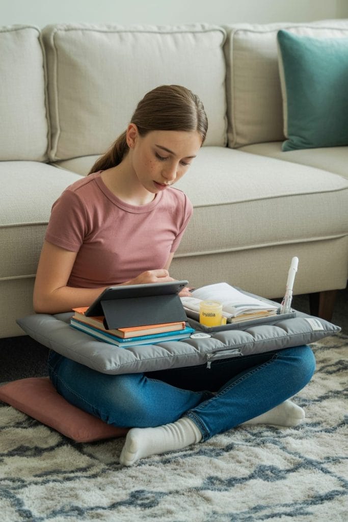 Perfect for students who like to do homework on the couch or floor, a portable lap desk includes space for writing, a built-in slot for tablets, and storage compartments for pens or chargers. It’s comfort and functionality in one.