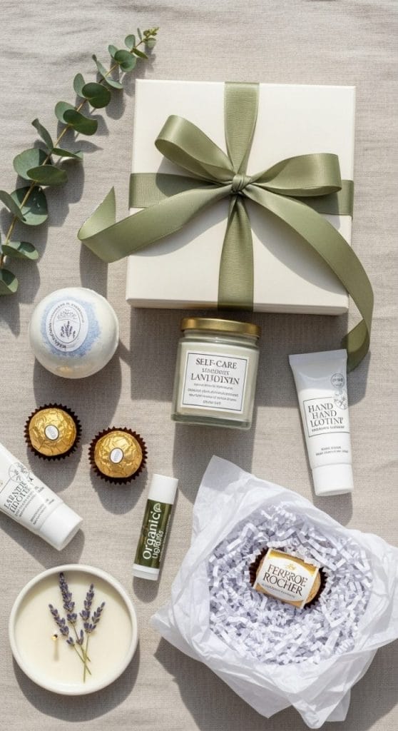 Whether you’re going with $10 budget boxes filled with candy and scrunchies or $50+ luxury packages with silk pajamas and designer lip balm, what matters is the thought behind it.