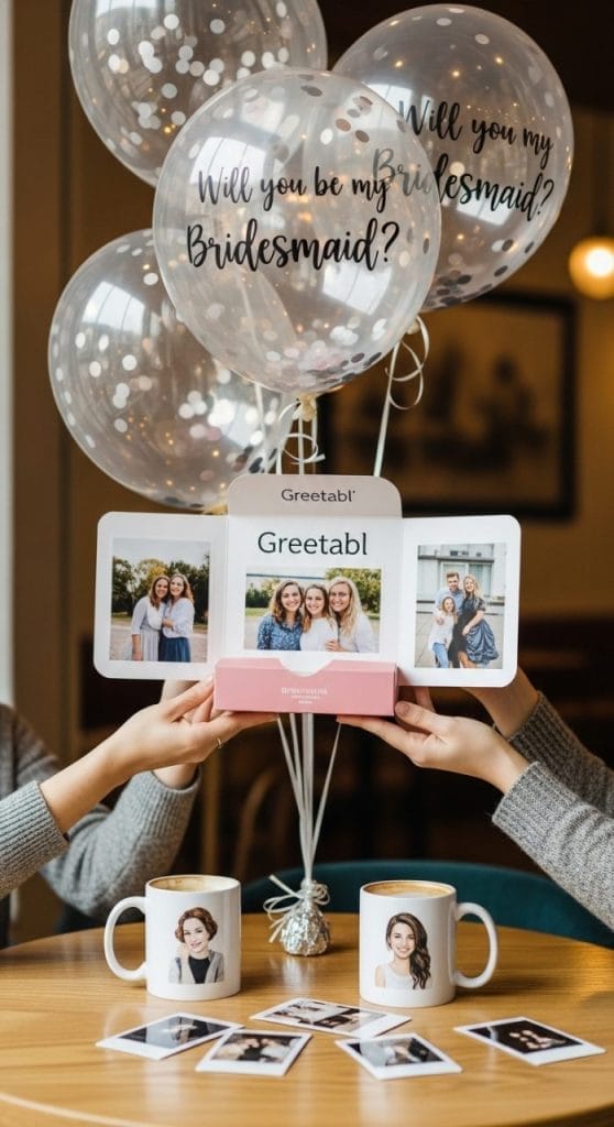 Some brides skip the box entirely and plan a bridesmaid proposal brunch or coffee date where they present personalized mugs with portraits that look like each friend.