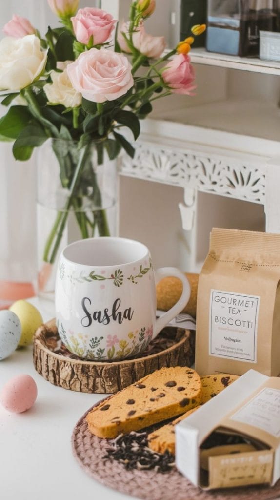 A cozy and practical Easter gift, a customized mug with the recipient’s name or a festive Easter design can be paired with a premium tea or coffee selection. Add a small jar of honey, biscotti, or a chocolate stirrer for an extra treat.