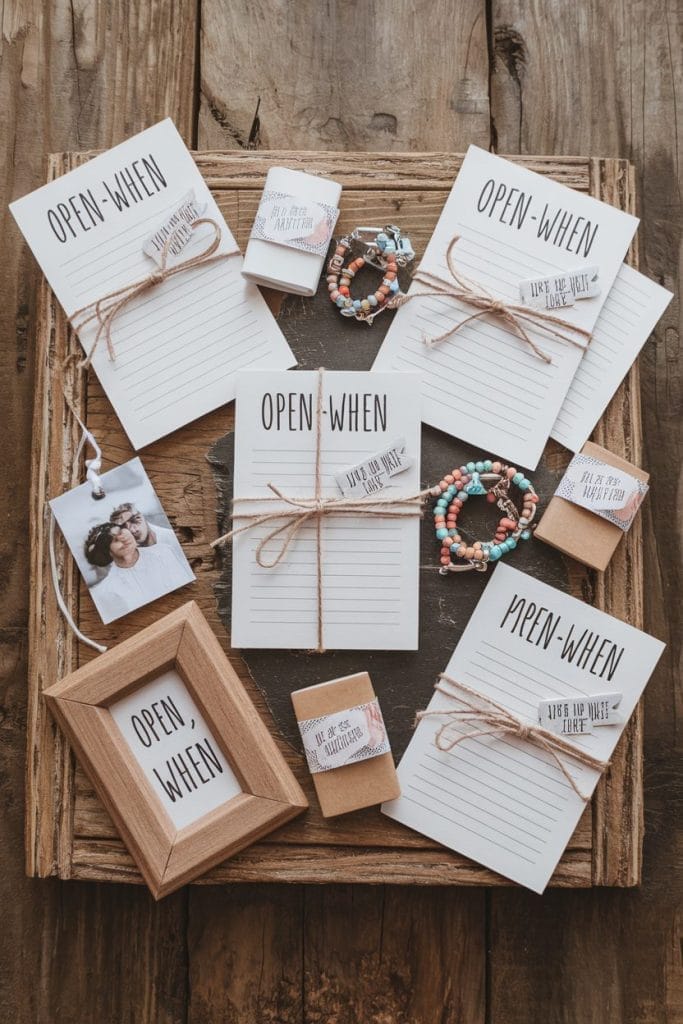 - Open-when letters for every mood (open when you miss me, open when life sucks, open when you need a laugh)