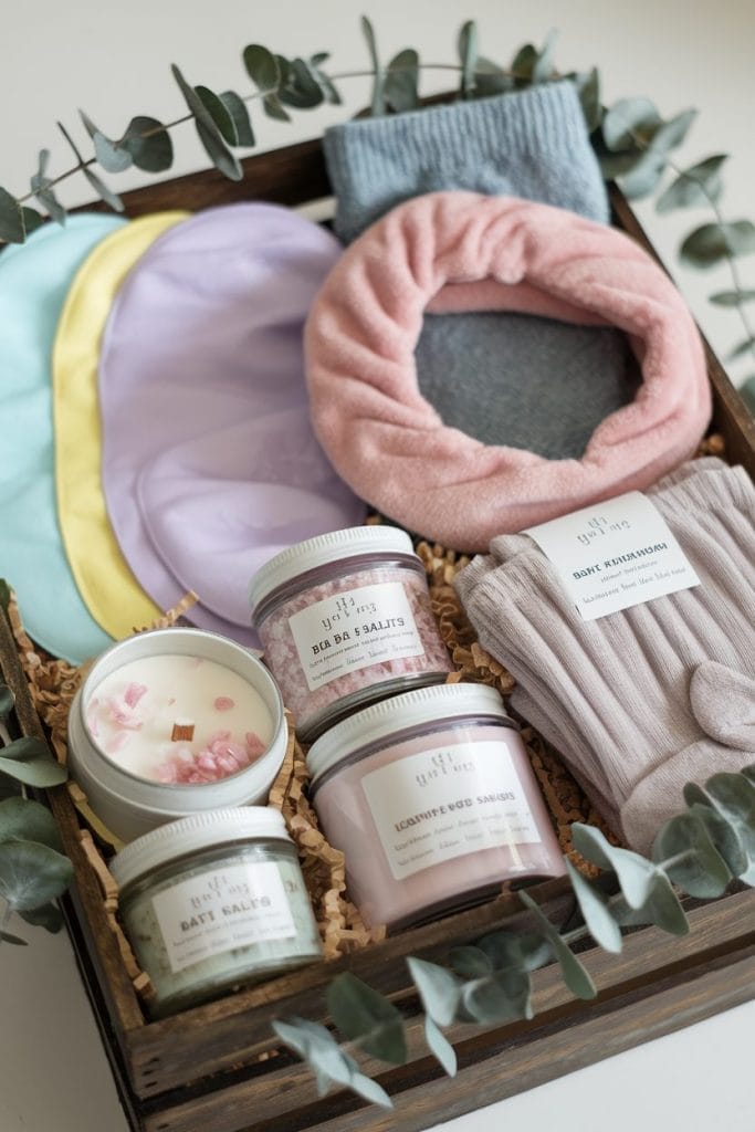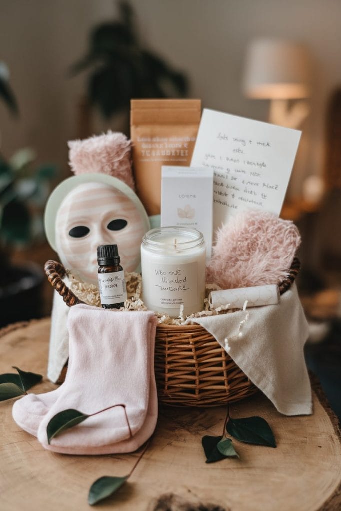| Self-Care Enthusiast | DIY spa basket, fuzzy socks, personalized candles |
