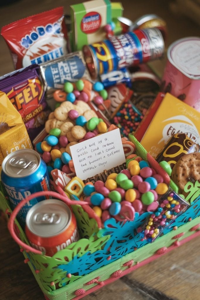 - Food gift basket — pizza kit, snack stash, or hot sauce sampler