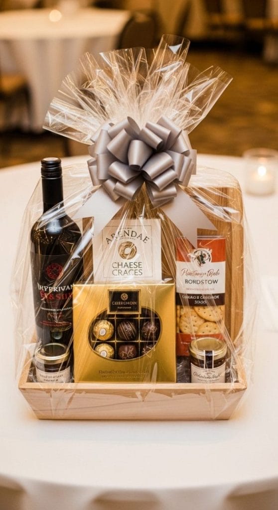 This works just as well for business gift baskets and corporate events. Same rules apply — theme it, make it look sharp, and include at least one thing that makes people go “ooh.”