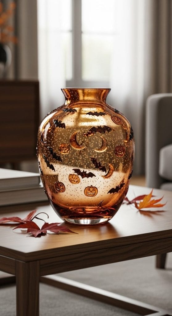 We’re talking hand-blown glass vases with pressed glass beads shaped like bats, moons, and pumpkins. These pieces shimmer like they’re genuinely enchanted, and bonus – they work year-round if you’re into that gothic aesthetic.