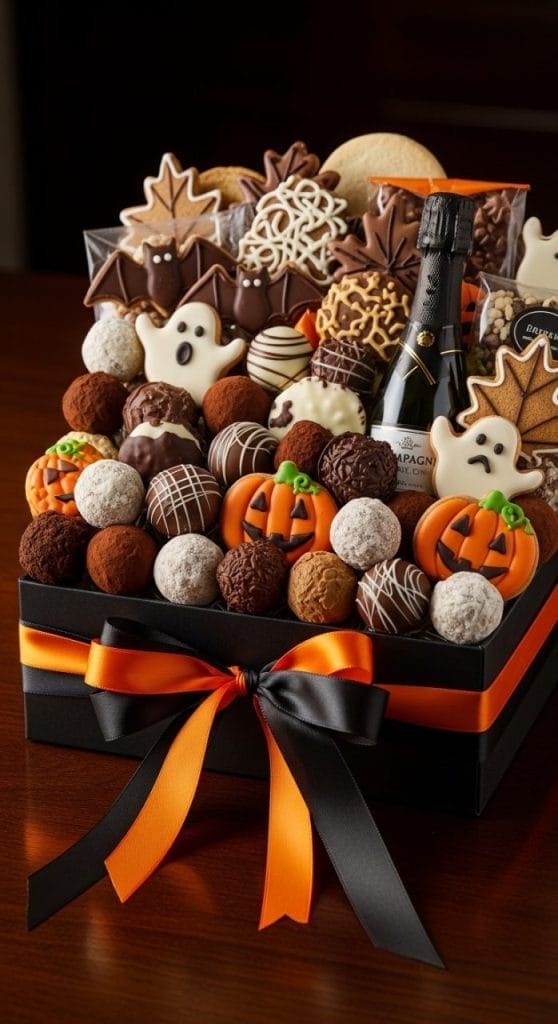 Companies like Harry & David and Broadway Basketeers now offer Halloween-themed baskets loaded with gourmet treats – think chocolate truffles, artisan popcorn, cookies, and even bottles of bubbly. Way better than fun-size Snickers bars, trust me.
