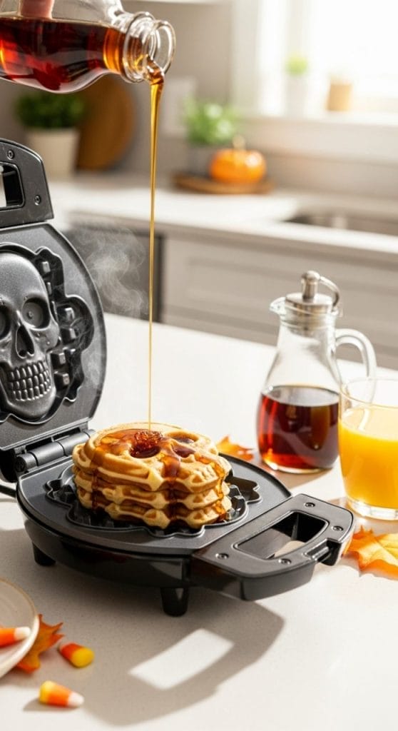 Skull-shaped waffle makers cook four-inch waffles in about three minutes. Perfect for Halloween morning breakfast or, let’s be real, dinner when you can’t be bothered to adult properly.