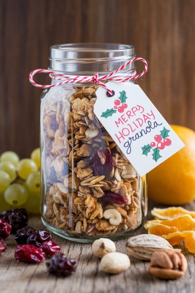 Whip up a batch of holiday-inspired granola with cranberries, nuts, and a hint of cinnamon for a tasty breakfast or snack gift. Package it in festive bags or jars.
