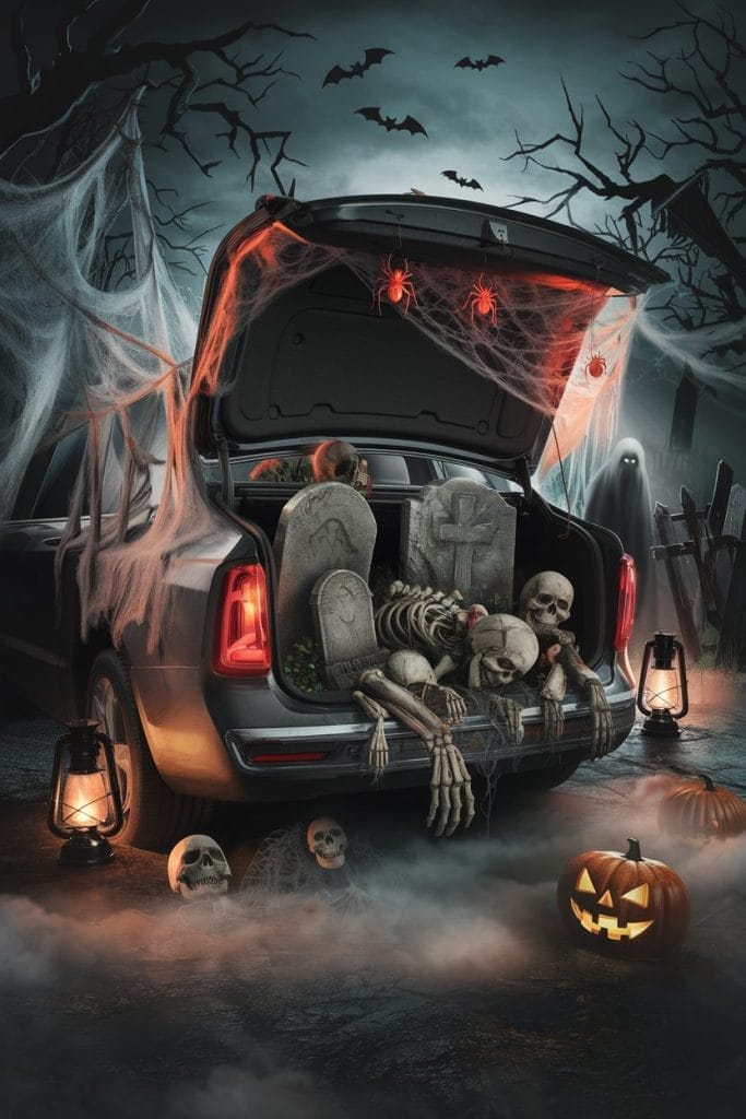 Dancing Skeletons: Hang skeleton cutouts or poseable skeletons in fun, dancing positions around your trunk. You can have them doing the thriller dance or just being silly. This adds a playful touch!