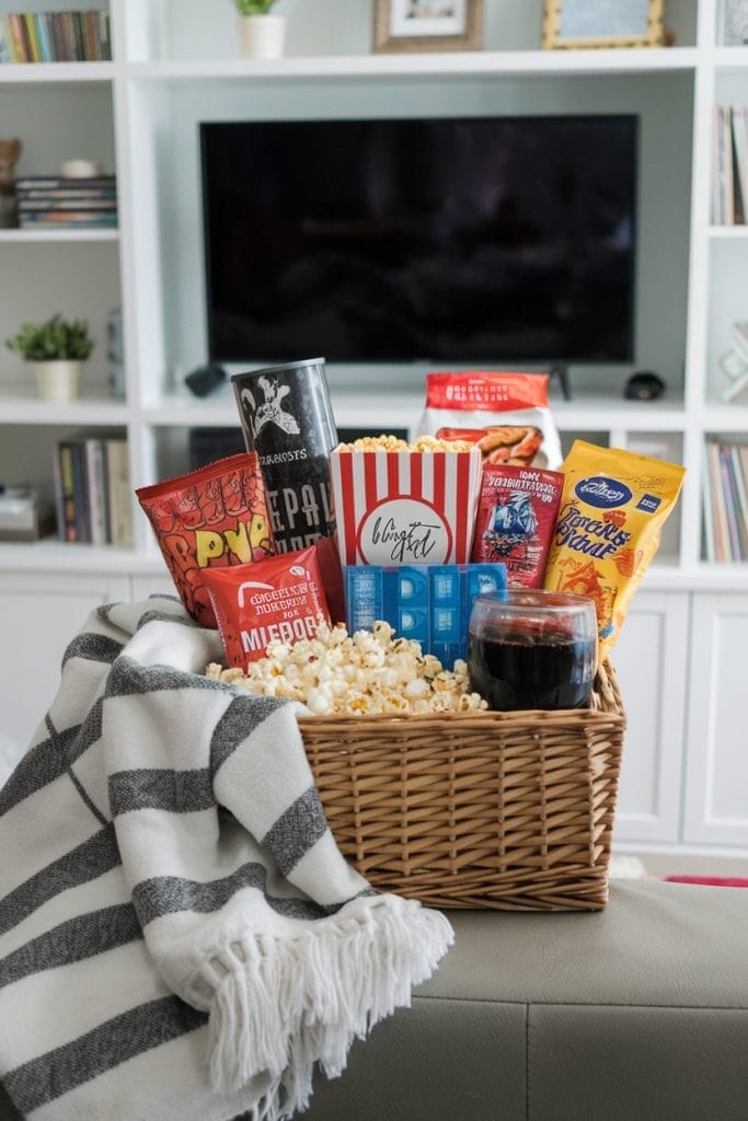 A movie night basket is a perfect excuse for a cozy date night at home. It’s full of everything he’ll need for the ultimate movie marathon with you.