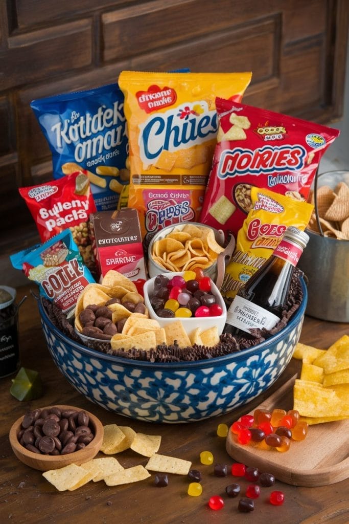 What to Include: Include a mix of his favorite snacks, such as chips, candy, nuts, jerky, and chocolate. Add unique or gourmet snacks he hasn’t tried before, like exotic-flavored chips or imported chocolates. You can also include a personalized snack bowl with his name or initials for an added touch.