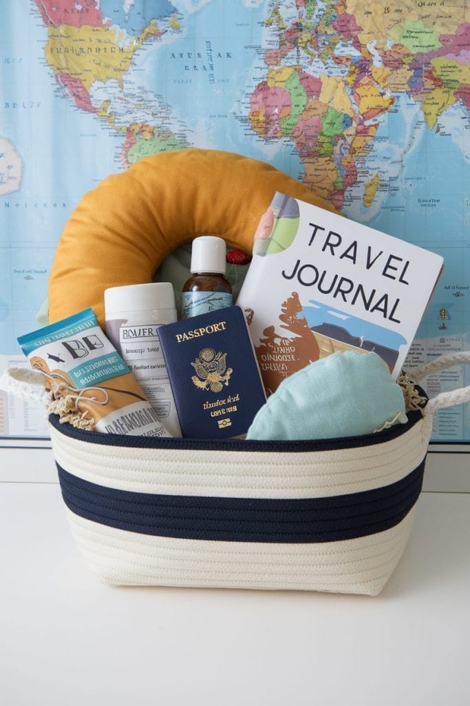 For a boyfriend who loves exploring or dreams of traveling, a travel-themed basket is a thoughtful and practical gift. It’s perfect for someone planning a future getaway or reminiscing about past trips.