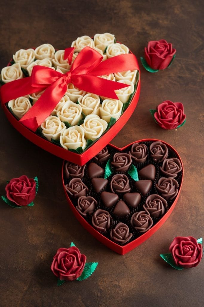 This creative take on traditional chocolates features a selection molded into the shape of roses. The combination of sweet treats and floral beauty makes it a perfect indulgence for Valentine’s Day. It’s a thoughtful gift for chocolate lovers who appreciate a touch of elegance.