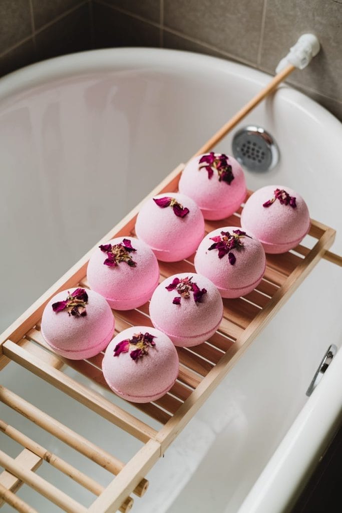 Create a spa-like experience at home with handmade rose petal bath bombs. These delightful fizzing spheres release nourishing oils and a lovely rose fragrance into the bathwater. Adding dried rose petals enhances the luxurious feel, making it an ideal DIY Valentine’s Day gift.