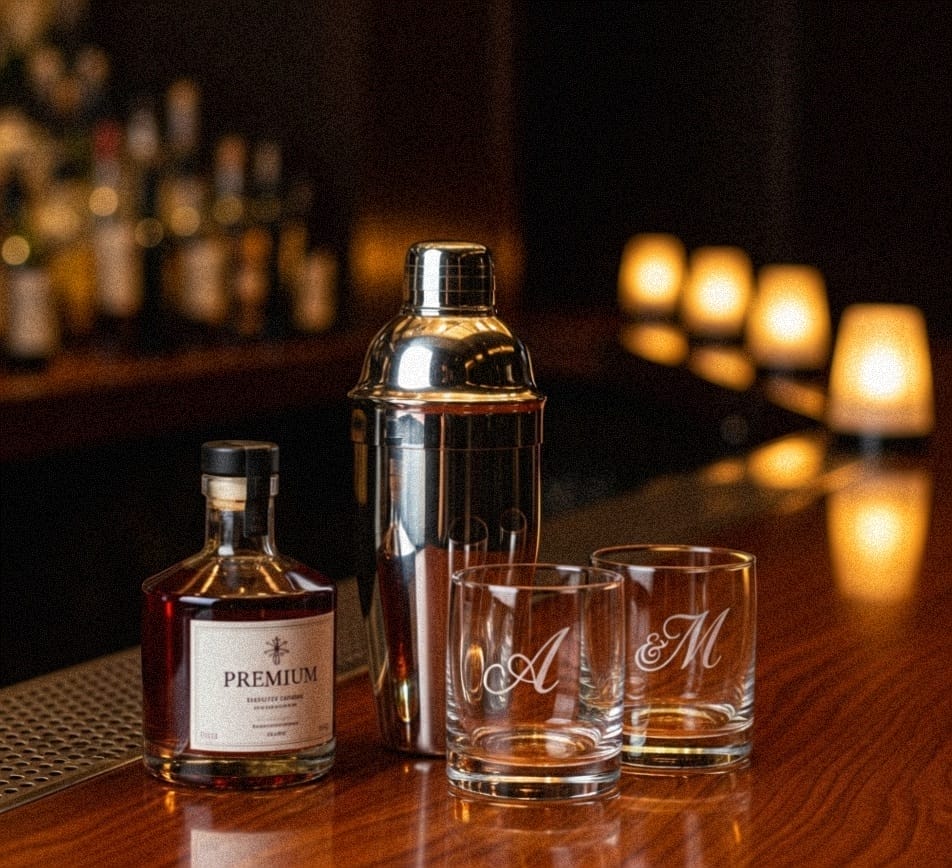 Most couples get wine glasses. Few get a complete bar kit with shakers, stirrers, and engraved glasses. Add a bottle of something special, and you’ve basically funded their date nights.
