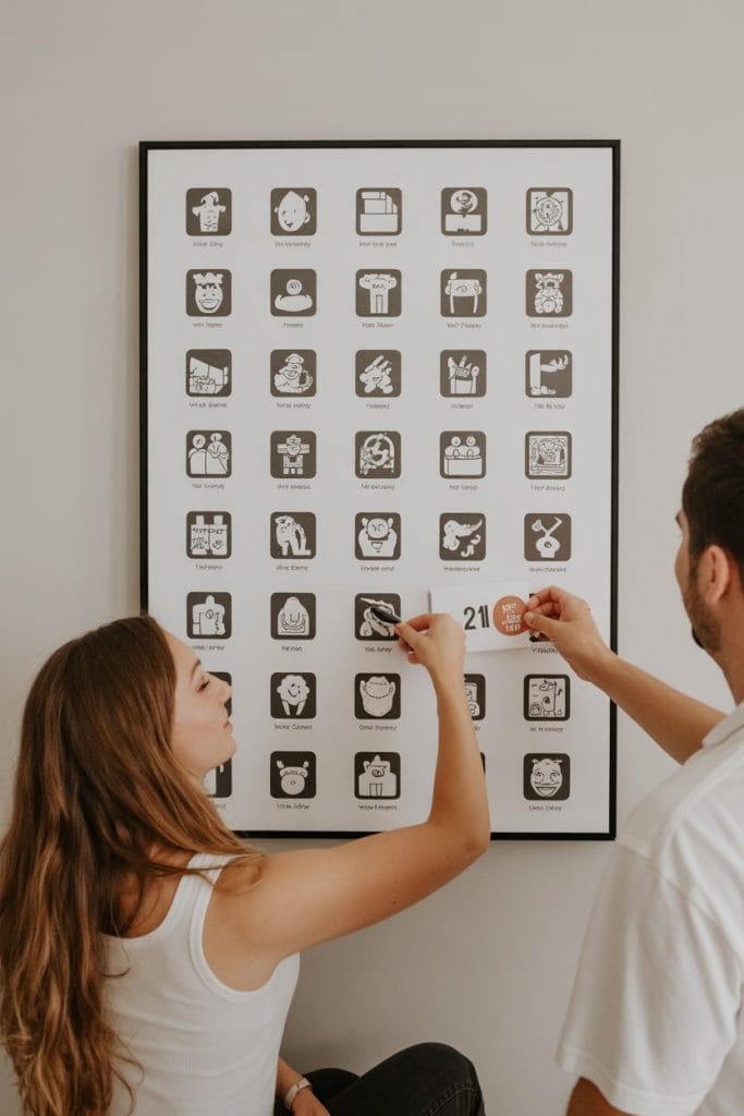 Think of it as a visual bucket list that becomes a shared art piece over the years—made more meaningful because they complete it together.