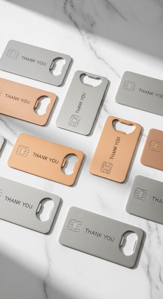 Skip the engraving with your initials unless you want people leaving them behind. Just get sleek, minimal openers that look good on their own.