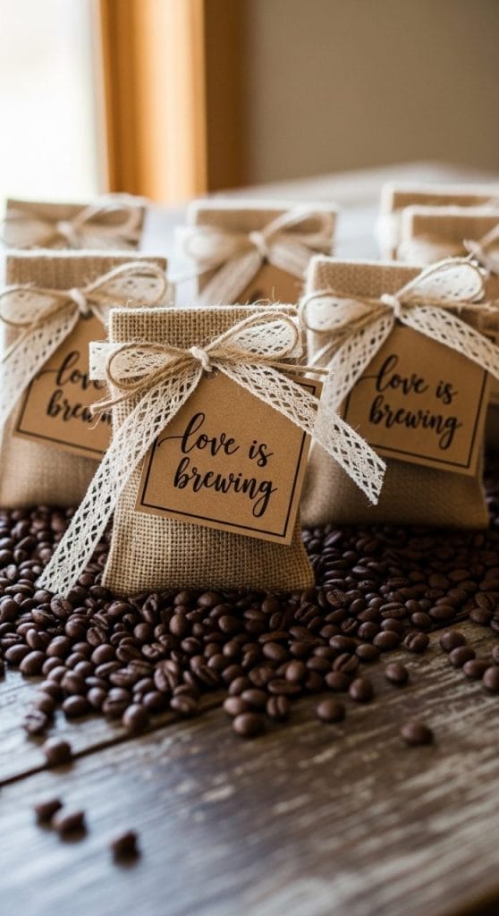 Set up a display where guests choose between coffee beans or loose-leaf tea bags. Label them “His Brew” and “Her Blend” or something less gendered like “Morning Kick” and “Afternoon Calm.” People love having choices, and this way no one’s stuck with something they won’t use.