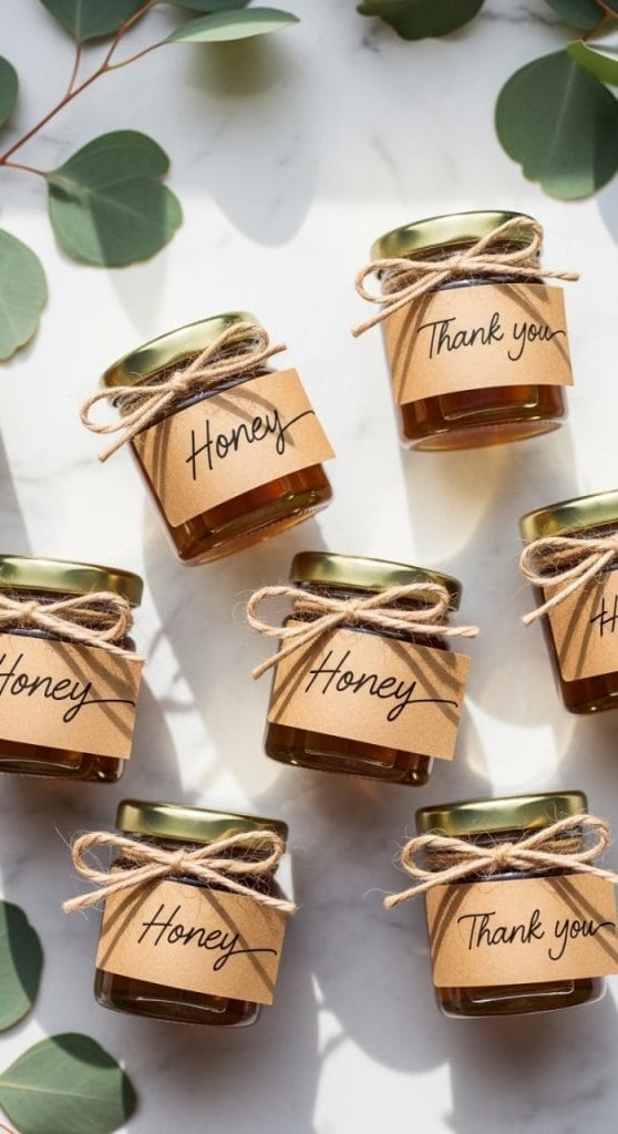Think about what you would genuinely want to receive at a wedding. Would you want a tiny picture frame with someone else’s wedding date on it? Probably not. Would you want a mini bottle of champagne or a jar of local honey? Absolutely.